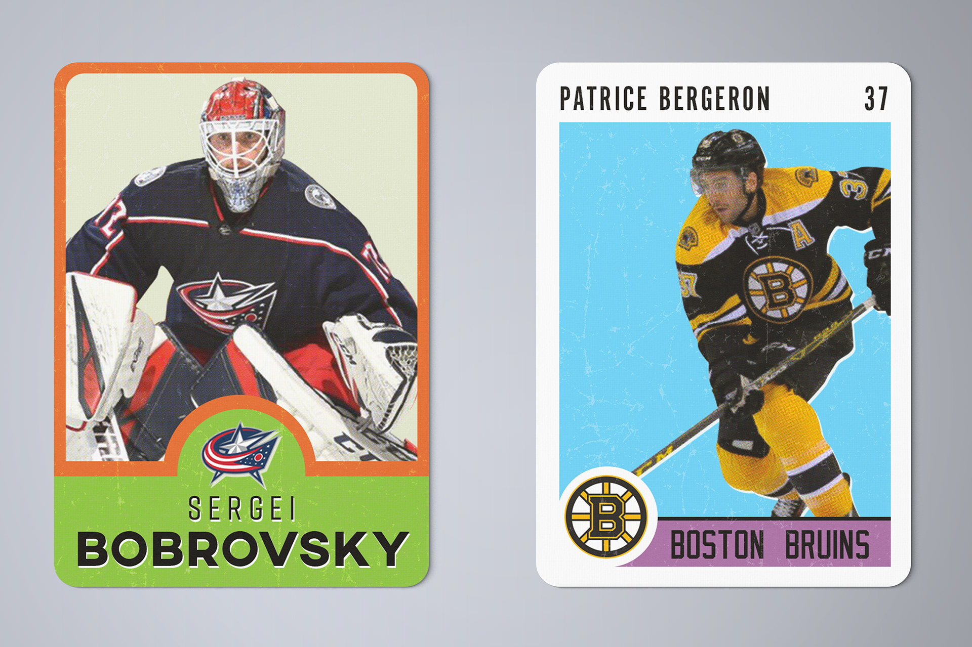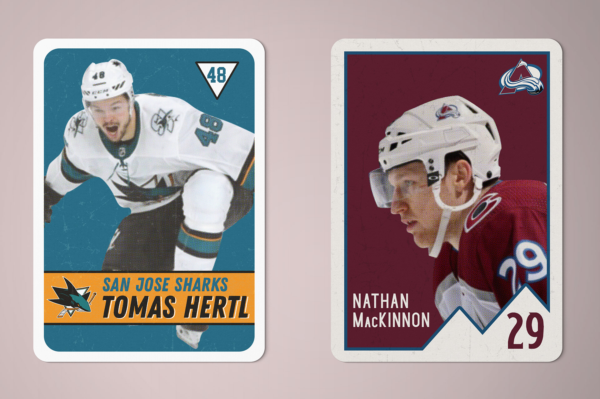 As a kid, I had tons of hockey trading cards. I loved all of the different design styles for the cards. I remember the joy of ripping open a pack of cards and searching for a collectable card. With this project I wanted to recreate that joy of opening a new pack of cards. The cards I opened up as a kid generally came from the 80s, 90s, and 2000s, but I wanted to design my cards to look older than that. After a lot of research, I started making my own vintage hockey trading cards based on the teams in the 2019 NHL Stanley Cup Playoffs.